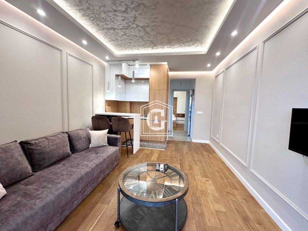 Amenities: New residential complex. The complex features a SWIMMING POOL and SPA with panoramic views of the sea and mountains. Reception. Parking. Video surveillance. Modern and high-quality materials were used in the finishing and construction. Natural floors, tiles, plumbing, aluminum profiles, split-system air conditioning, water heater. New furniture and appliances. Stylish and modern interior. Convenient layout.