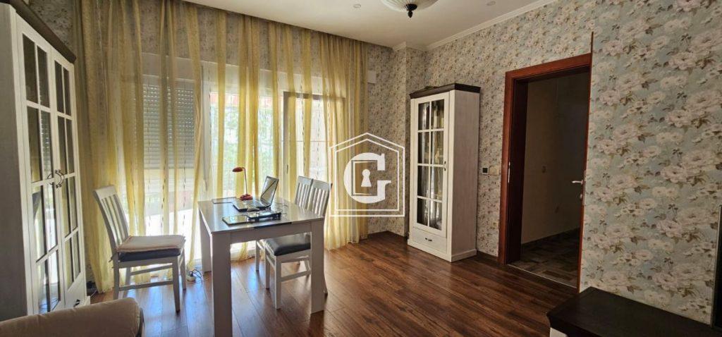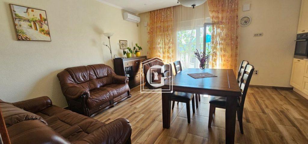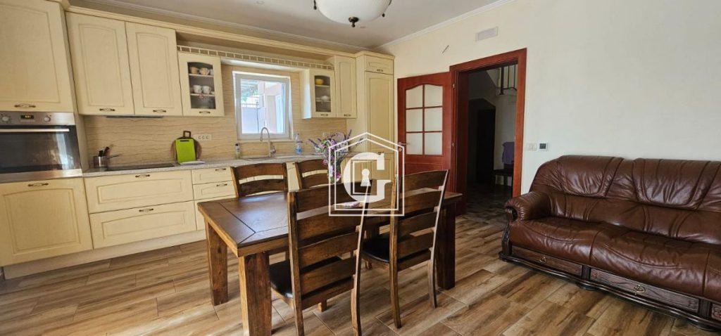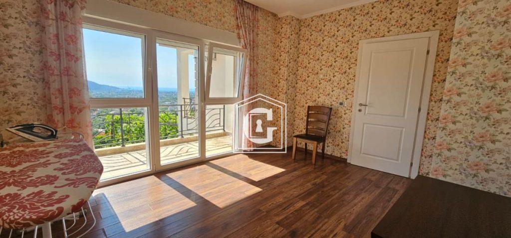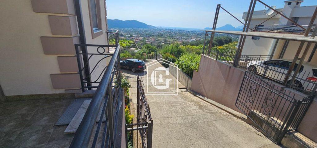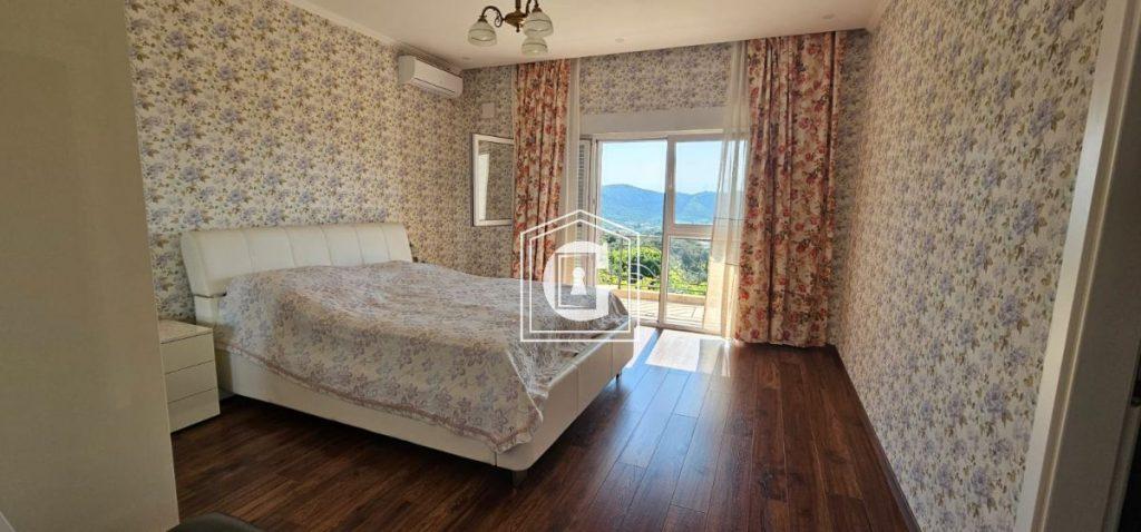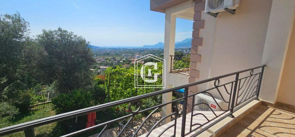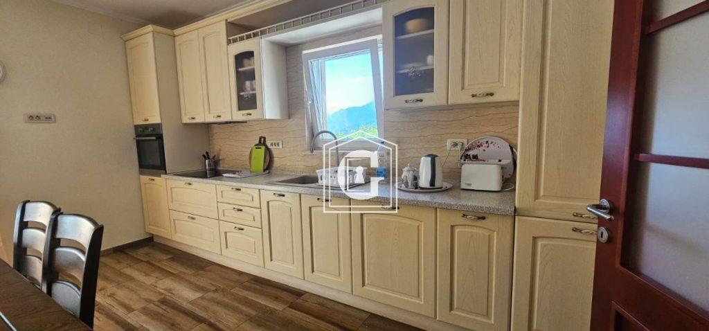 Sea and mountain view. Renovation with quality materials: natural floors, tiles, underfloor water heating throughout the house, which keeps utility payments minimal. Quality furniture and appliances are sold with the villa. Split systems, whole-house cooling, boiler, plumbing, own water supply, supply ventilation devices to prevent mold. The property features a fruit orchard, citrus orchard, olives, and grapes (total area – 1066 m2). Private parking for three cars. Technical rooms.