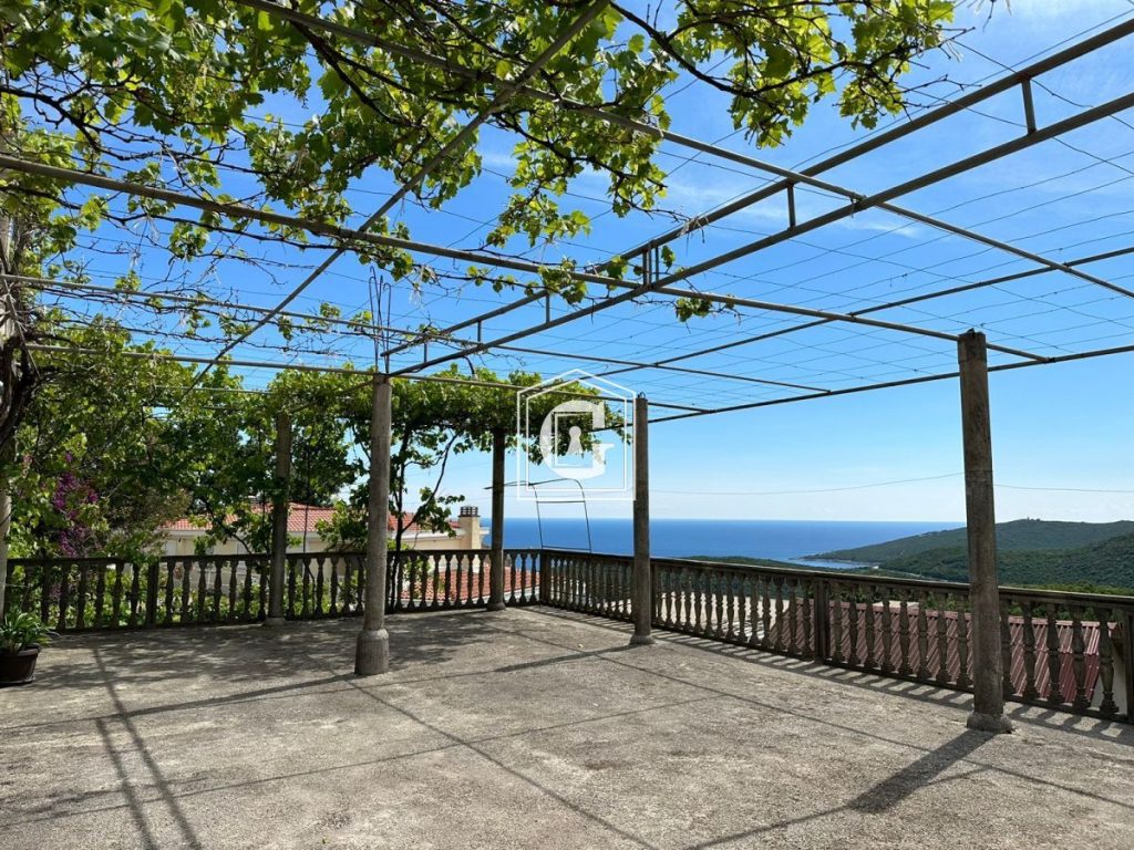 House structure: 4 bedrooms, 1 bathroom, 1 kitchen. Ground floor, 105 m2, huge terraces (not included in the area). House built in 1986. City water, 1 septic tank. Sea view. 3 entrances.