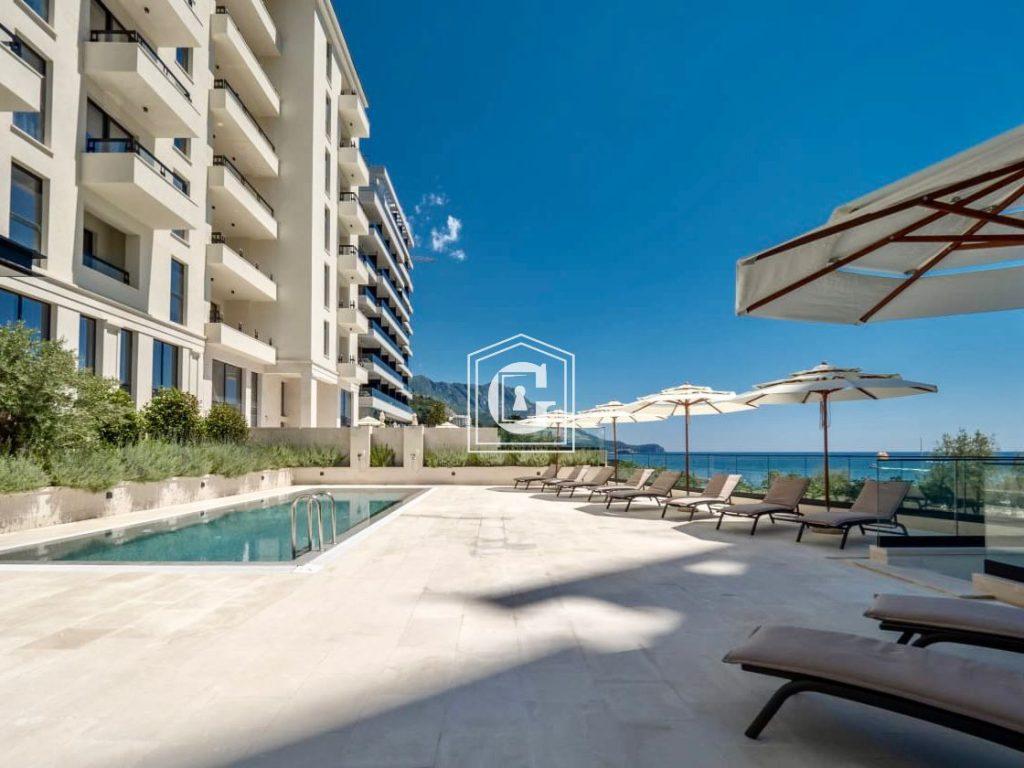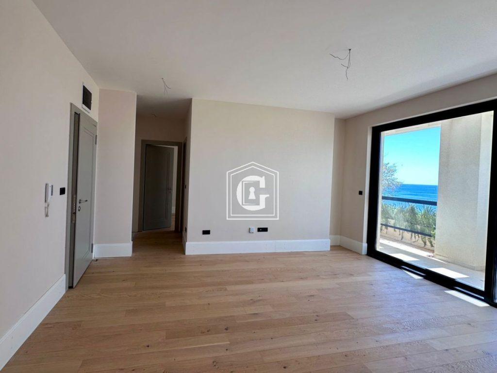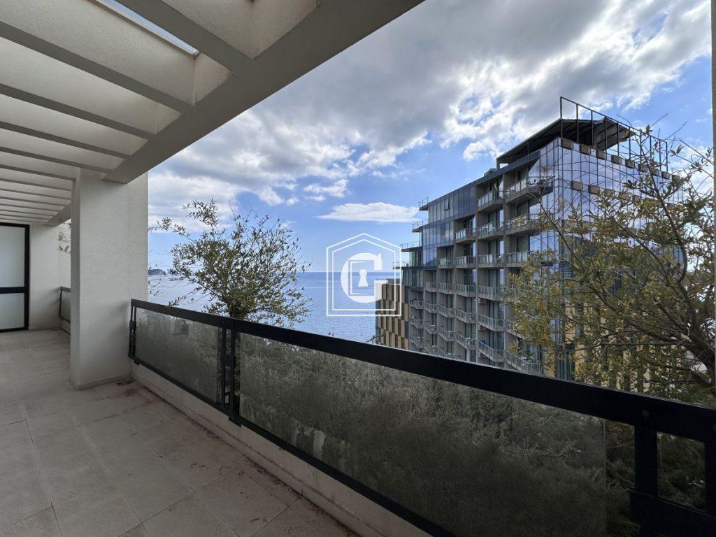 New “PREMIUM” class building. Sea view. Use of high-quality and expensive materials in construction and finishing: natural flooring, ceramic tiles, plumbing, aluminum profiles, stained glass glazing. Video intercom. Split-system air conditioning in every room, electric water heater. Elevator. Management company fee 1€/m2. Gated community. Swimming pool on the premises. Free outdoor parking.