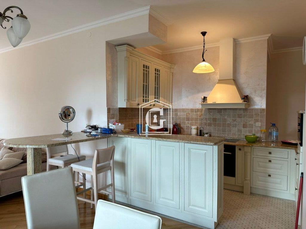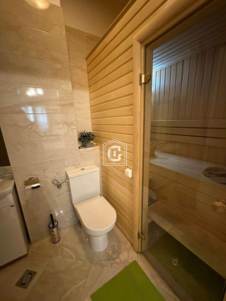 Apartment layout: kitchen-living room, 4 bedrooms, 3 bathrooms, hallway, sauna, large open terrace-courtyard with panoramic sea view. Barbecue area. In-apartment sauna. Renovation using high-quality materials. Expensive furniture and appliances. Split systems, water heaters.