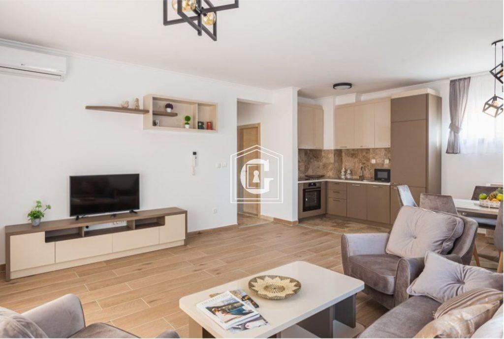 Apartment layout: kitchen-living room, 1 bedroom, 1 bathroom. 3rd floor with sea view. Stylish and modern interior. High-quality modern renovation. Expensive furniture and appliances. Air conditioning.