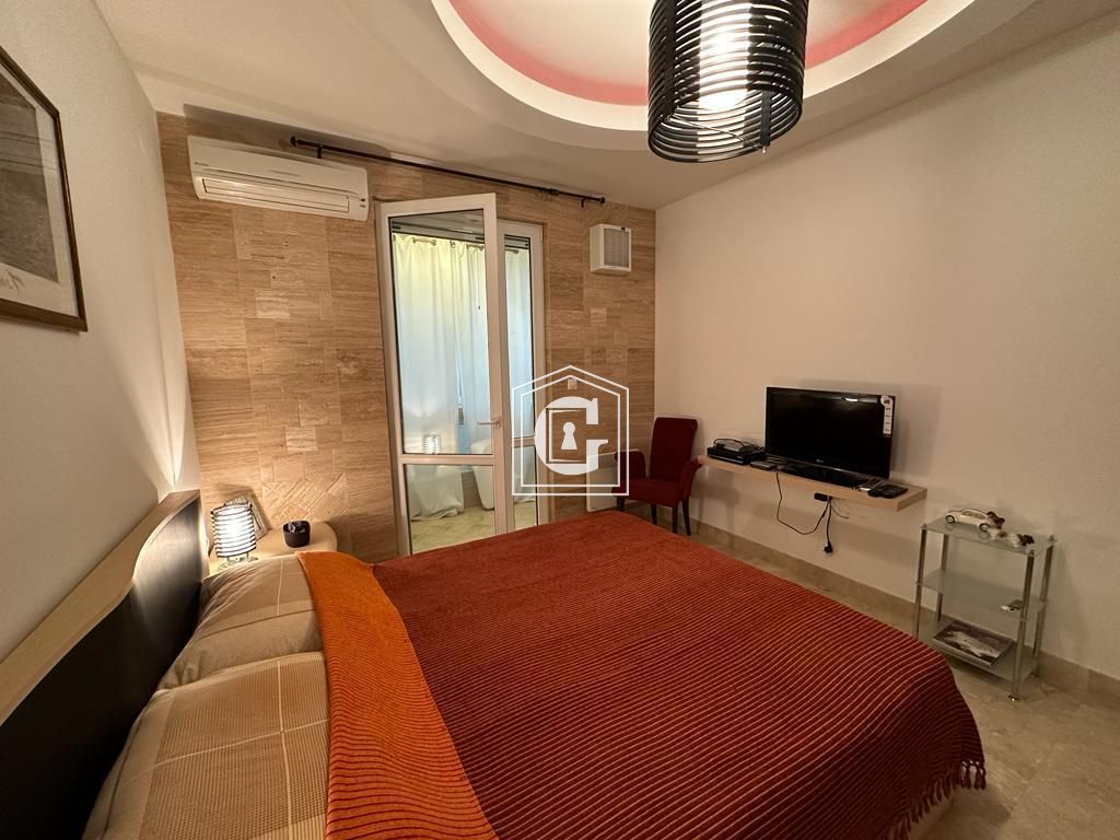 Apartment layout: 1 bedroom, 1 bathroom, 2 terraces, kitchen-living room. 2nd floor. Panoramic windows. Stunning sea view! Underfloor heating throughout the apartment, insulated walls. 2 split-system air conditioners, water heater. Cross ventilation. Renovated, furnished, appliances included.