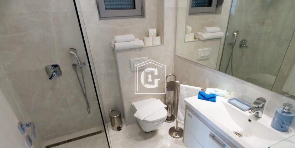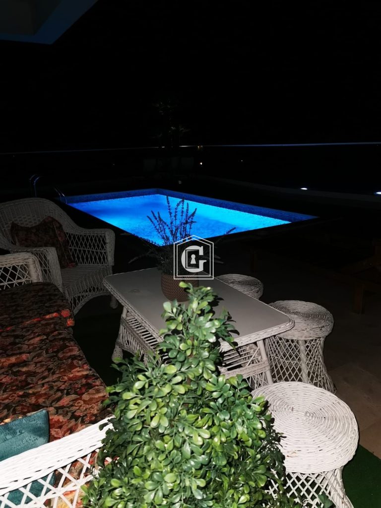 Villa structure: 3 bedrooms, 3 bathrooms, terraces, 3 living rooms with their own kitchens, private pool, adjacent area, separate entrance. New renovation, furniture, appliances. Panoramic windows. Sea and garden view. Split-system air conditioning. Internet access.