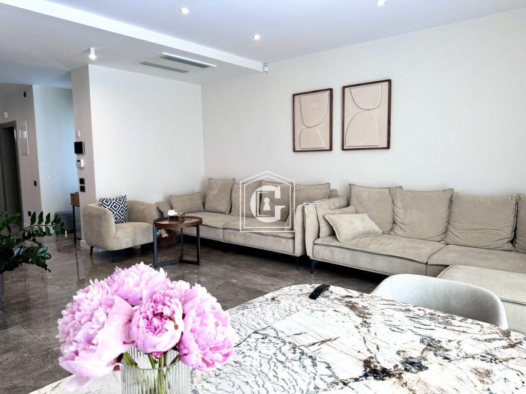 Land plot of 650m2 with parking spaces. The villa is built from high-quality materials using advanced technologies. In the yard, there is a fruit garden and a veranda with a barbecue area.