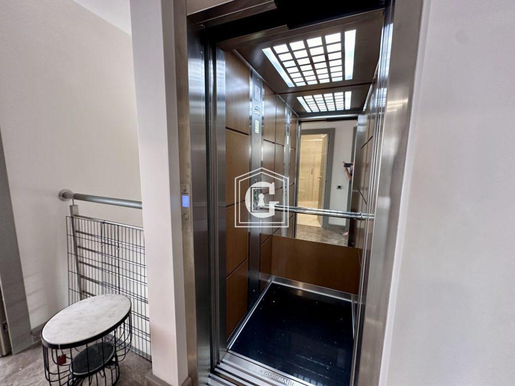 The villa is equipped with an elevator rising from the garage, which fits 2 cars.
