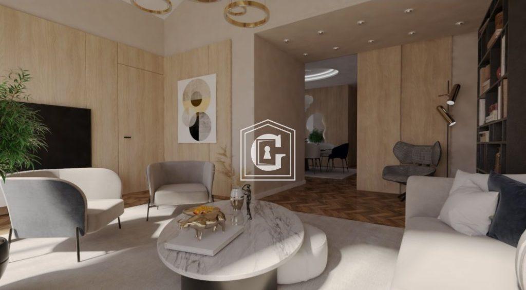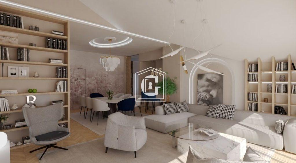 Apartment layout: kitchen-living room, 3 bedrooms, 4 bathrooms, hallway, 3 terraces. House built in 2015. During construction and renovation, the highest quality materials were used. Apartment design project is included. Aluminum windows and doors, electric roller shutters. Interior doors made of solid wood. Underfloor heating, split-system air conditioning. Home video surveillance, fire alarms. Elevator.