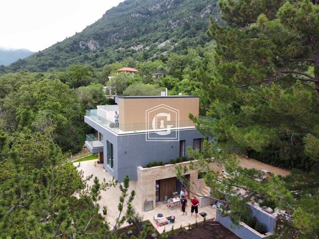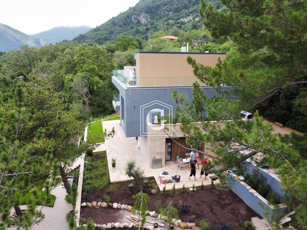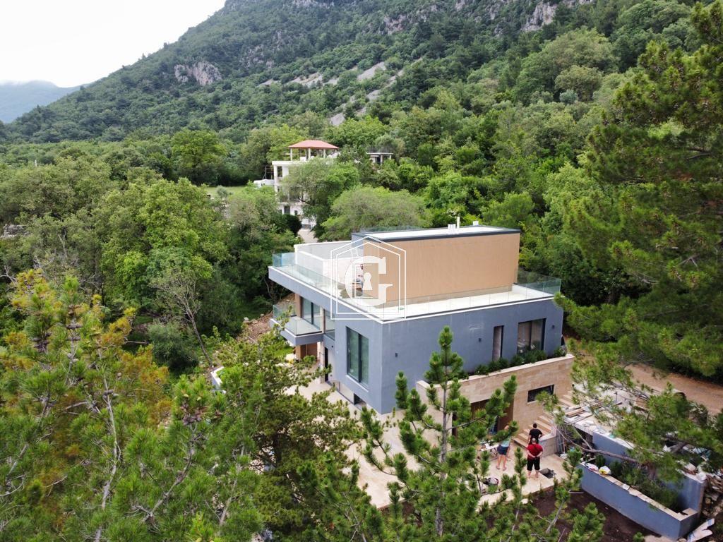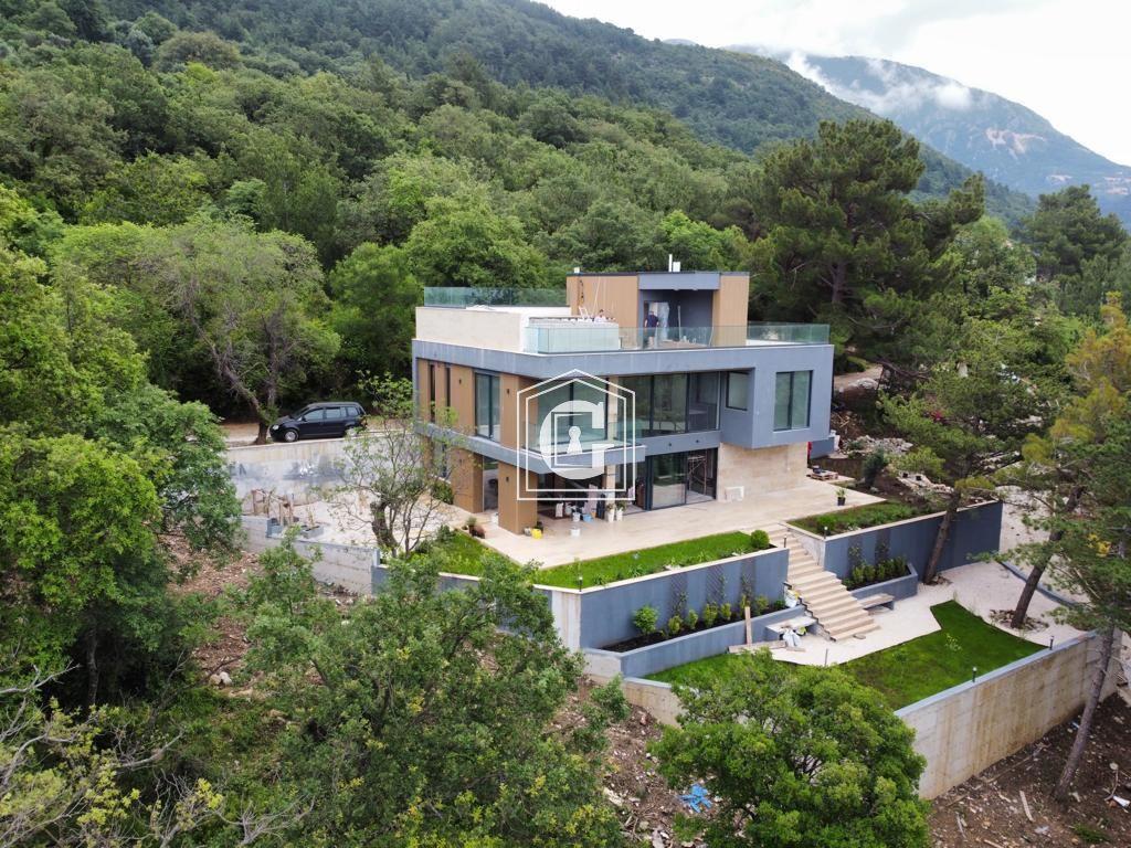 New modern family villa. Bedrooms and terraces with panoramic views of the sea, Sveti Marko Island, and the Luštica Peninsula. High-quality construction materials, quality waterproofing and thermal insulation. Solid foundation, hydrophobic concrete, all the latest technologies. Panoramic windows and double-height ceilings.