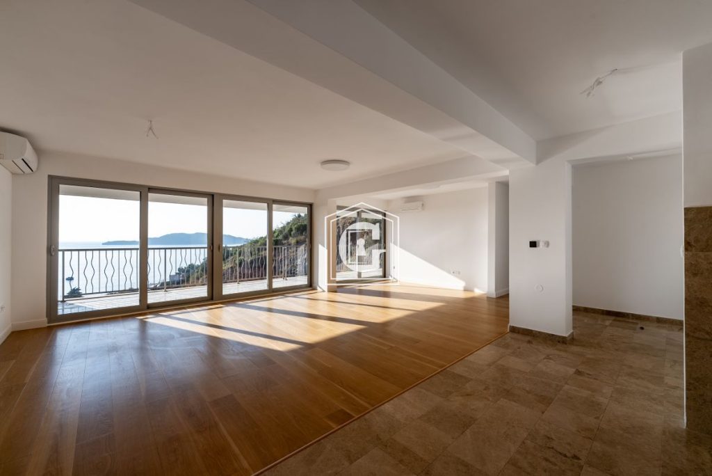 180 meters walking distance to the sea. Panoramic view of the sea and the Budva Riviera. Convenient layout. New renovation using quality materials. Natural flooring. Split-system air conditioning, electric water heater. Underfloor heating in bathrooms. Ideal for living and renting out.