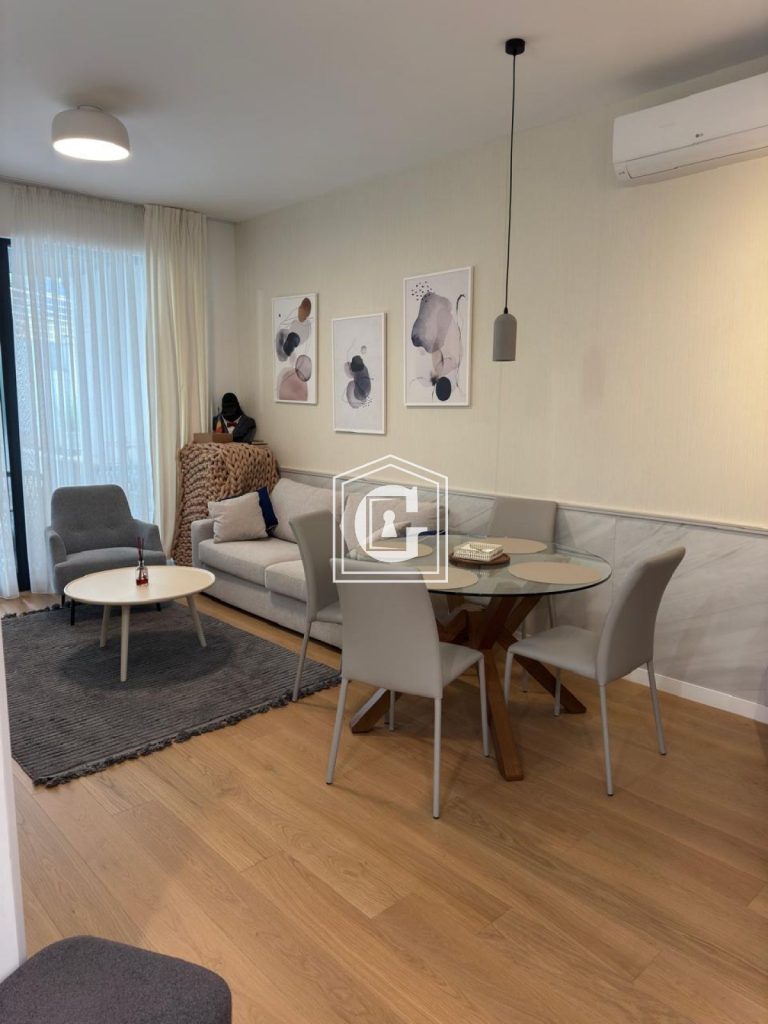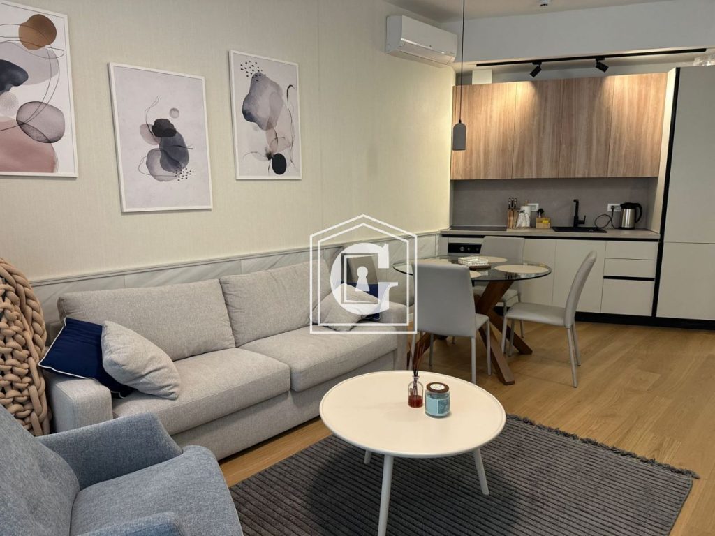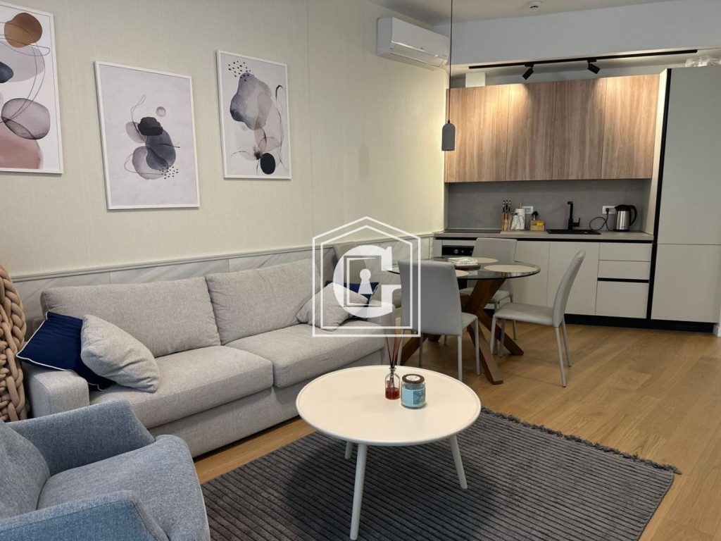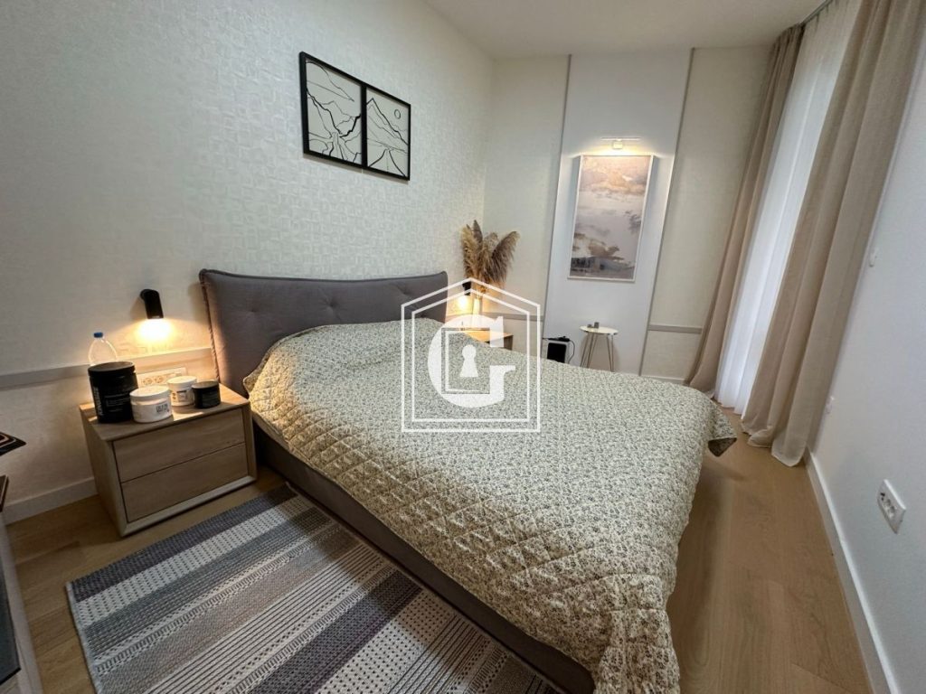 New residential complex with a closed territory. The complex features a swimming pool, fitness gym, and children’s playgrounds. The apartment has a well-thought-out layout with an open-plan living space and convenient access to the terrace. The rooms are compact and functional, ensuring comfortable use of every meter. New furniture and appliances. High-quality renovation. High ceilings. Aluminum profiles. Tiles, plumbing. Video intercom. Split-system air conditioning. Electric water heater. Elevator. Management company. Parking space included in the price.
