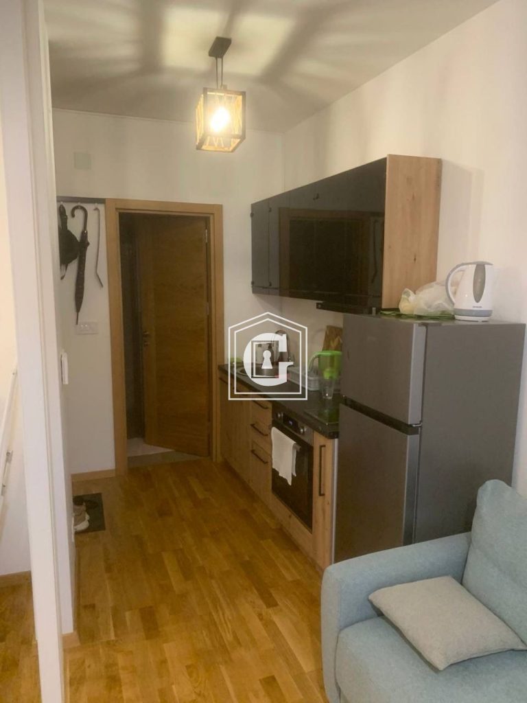 Apartment layout: Kitchen-living room-bedroom, 1 bathroom, terrace.