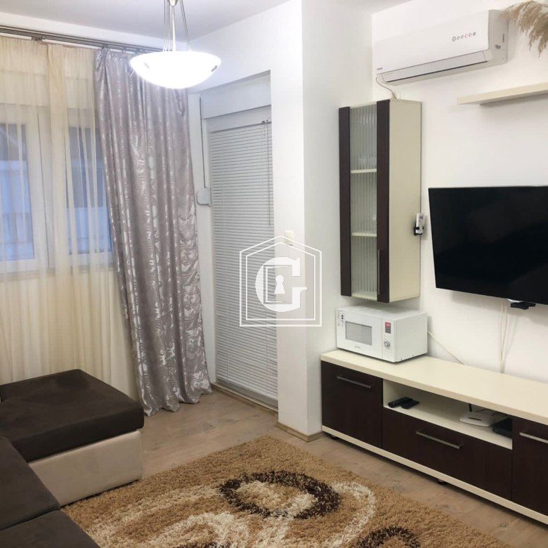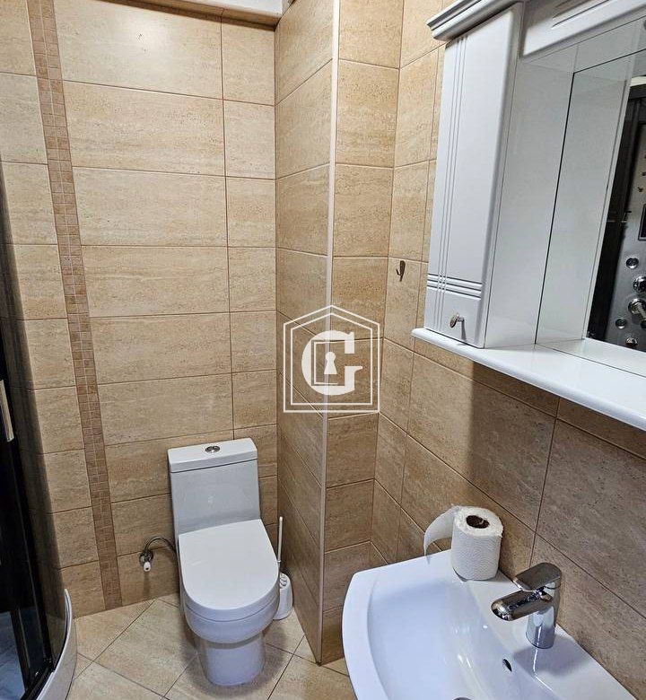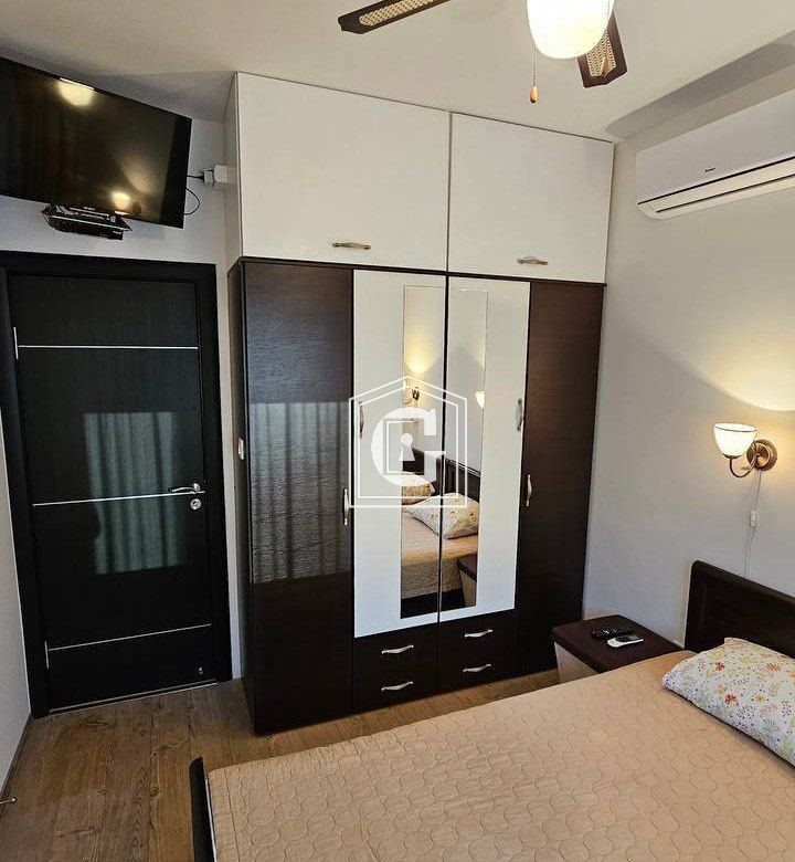 Bright and cozy apartment in Bečići. New building. Convenient layout. City view. High-quality renovation. Furniture and appliances. Tiles, plumbing. Video intercom. Split-system air conditioner. Electric water heater. Property management company.