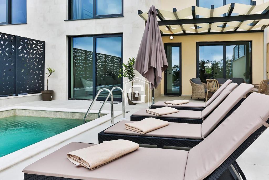 • Private pool with sun loungers, umbrellas, and a sofa