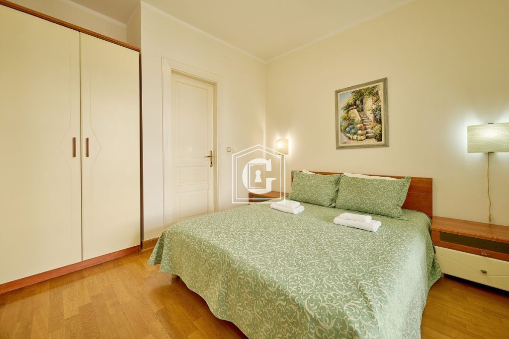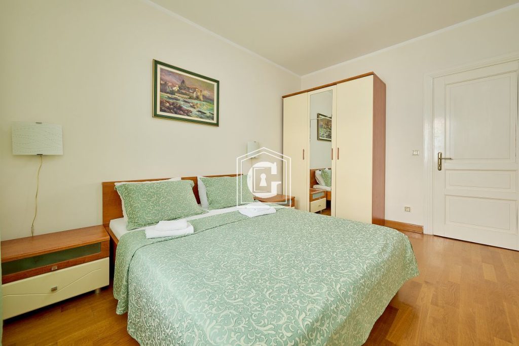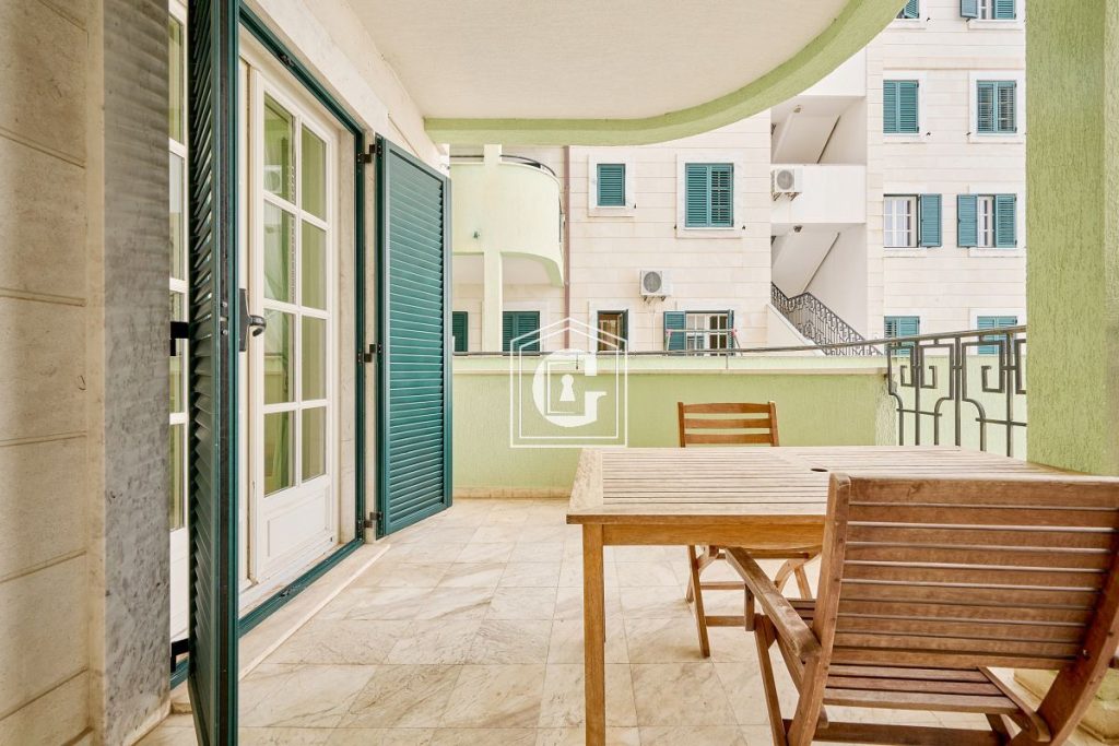Amenities: Apartment with custom-designed renovation and a fantastic view of the mountains and the sea horizon. Stylish renovation. The apartment is fully furnished and equipped with everything necessary for comfortable living. The kitchen is fully equipped with a large refrigerator, induction cooktop and oven, microwave. Separate dining area. The bathrooms have a shower and a bathtub. This apartment also has a storage room. The terrace offers a stunning view of the unique island of Sveti Stefan. Natural flooring. Plumbing, split-system air conditioning, water heater. Management company.