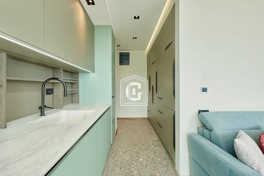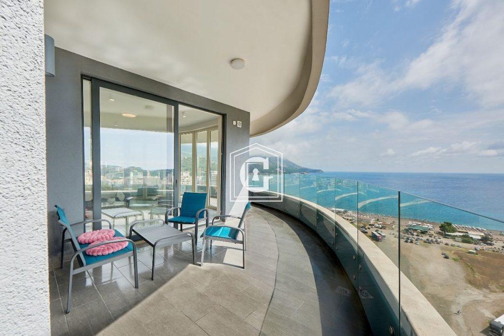 Amenities: New premium residential complex. Stunning sea view. Convenient layout. Designer renovation using high-quality and expensive materials. Furniture and appliances. Hidden lighting. Panoramic glazing. Elevator. Split-system, water heater. Management company.