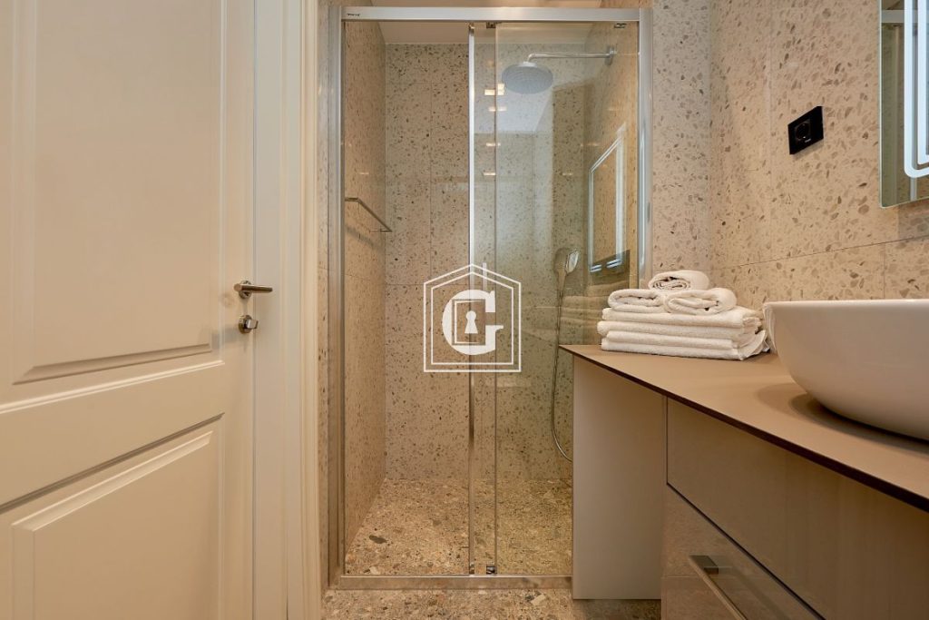 Apartment layout: Kitchen-living room, 2 bedrooms; 2 bathrooms, huge terrace with sea view.