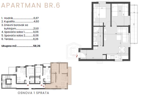 Quality and design: The apartments are meticulously designed to meet the highest modern standards of quality and comfort. The building’s exterior perfectly fits the Mediterranean architectural style, and specially selected natural materials give the building a special beauty.