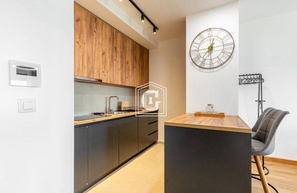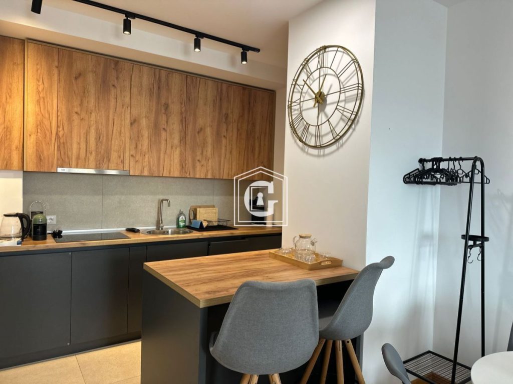 New residential complex. Convenient layout. High-quality renovation. Stylish and modern interior. Natural flooring. High-quality entrance door. Aluminum window frames. Tiles, plumbing. Furniture and appliances. Fully equipped kitchen area. Video intercom. Split-system air conditioner, electric water heater. Elevator. Underfloor heating in the bathroom. Property management company. Underground parking (for an additional fee).