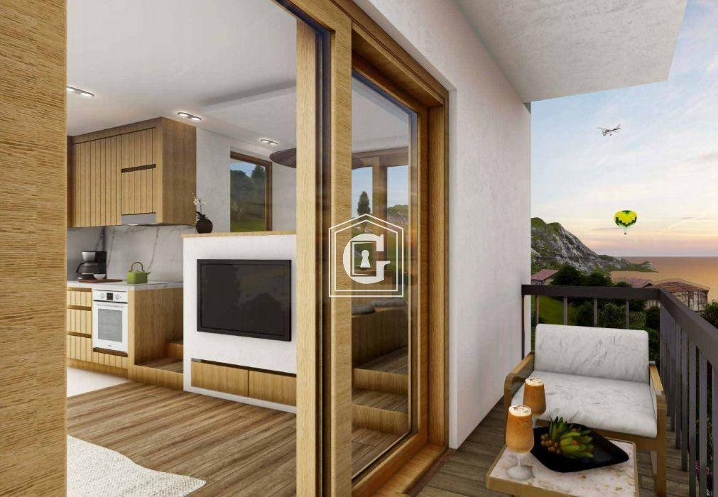 Новый жилой комплекс из двух корпусов. Современная архитектура органично сочетающаяся со средиземноморской природой. Вид на море и горы. Ресепшен. Фитнес-зал и детские площадки на территории комплекса. Удобные планировки апартаментов. Окна от пола до потолка. Благоустроенная зеленая территория. Использование качественных материалов при строительстве и отделке: паркет, керамика, электрические рольставни. Сантехника. Сплит-система, электрический бойлер.  Лифт. Управляющая компания.