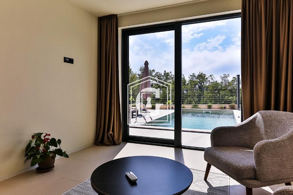 • Нижний этаж (-1) гостиная с креслами, выходящая прямо на террасу у бассейна
