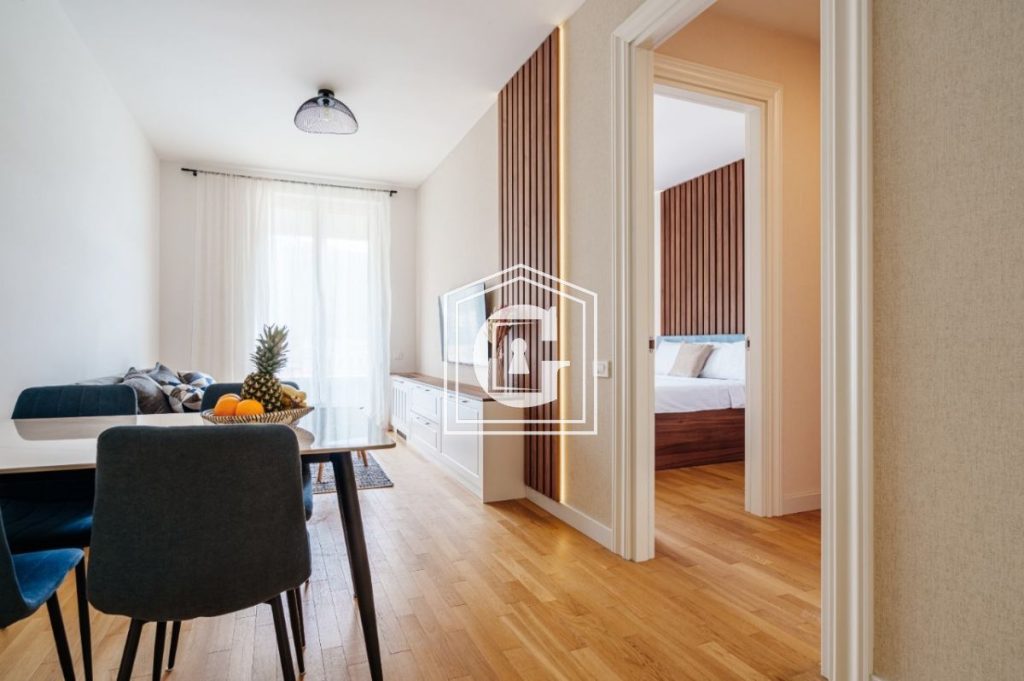 Премиальный комплекс через дорогу от моря с открытым бассейном с видом на Адриатику, зоной лежаков и консьерж-сервисом. На территории расположены кафе и салон красоты. Для жителей предусмотрены подземный и наземный паркинг. Управляющая компания предлагает услуги посуточной аренды «под ключ» — от уборки до рекламы и полного обслуживания гостей.