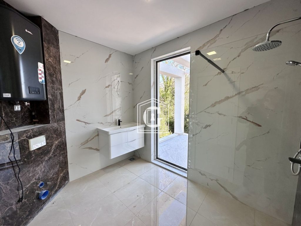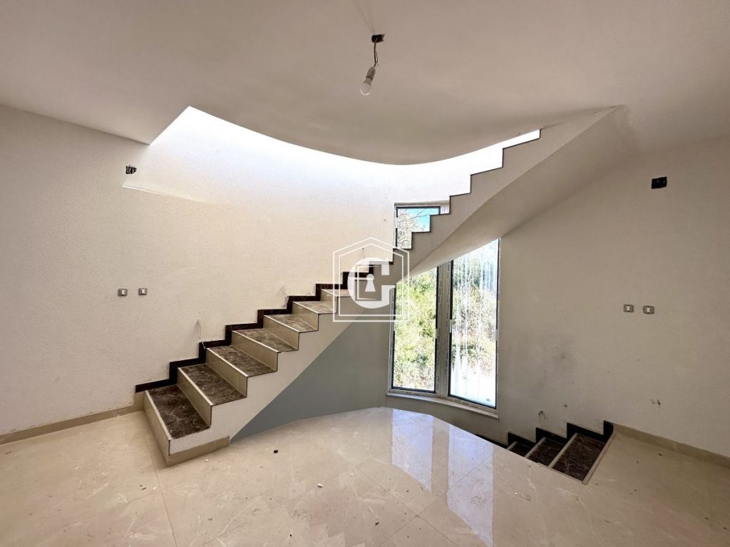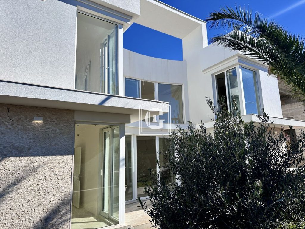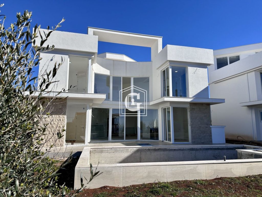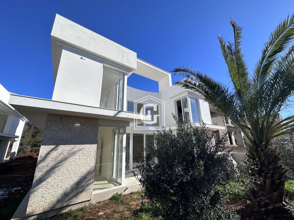 Структура виллы: терраса на крыше 89 м2. Бассейн. Гараж. Одна из четырёх современных вил с уникальным дизайном и архитектурой. Панорамное остекление. Современный интерьер с ремонтом из качественных и дорогих материалов: керамогранит, бойлеры, сплит-системы, дорогая сантехника. Мебель и техника. Изумительный вид на окружающую природу. Ухоженная территория: газон, оливковые деревья, патио для барбекью.