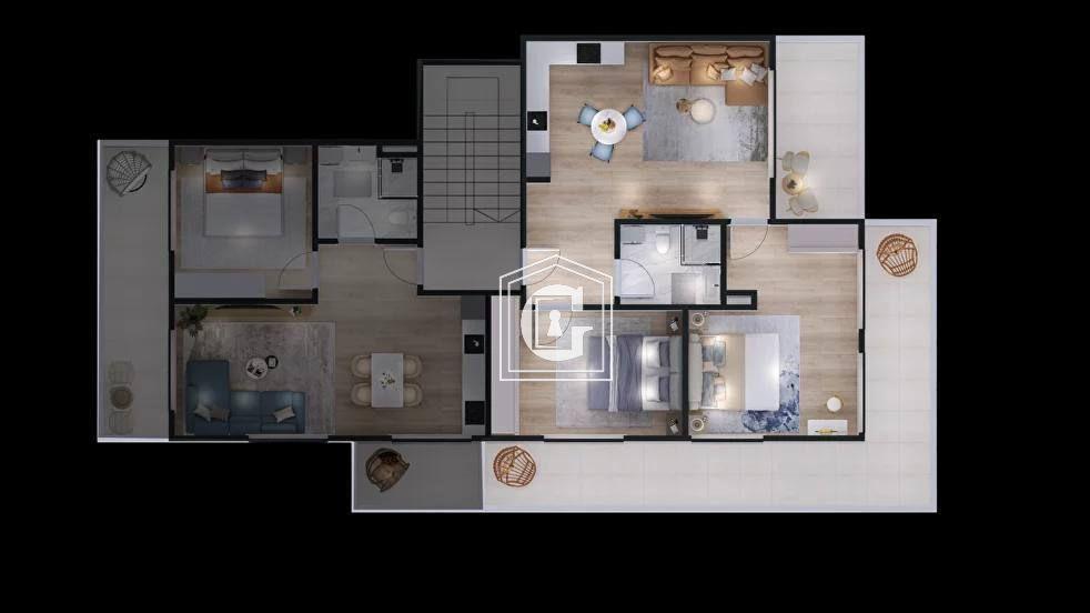 Struktura stana: Hodnik, kuhinja, dnevni boravak – trpezarija, dve spavaće sobe, terasa.
