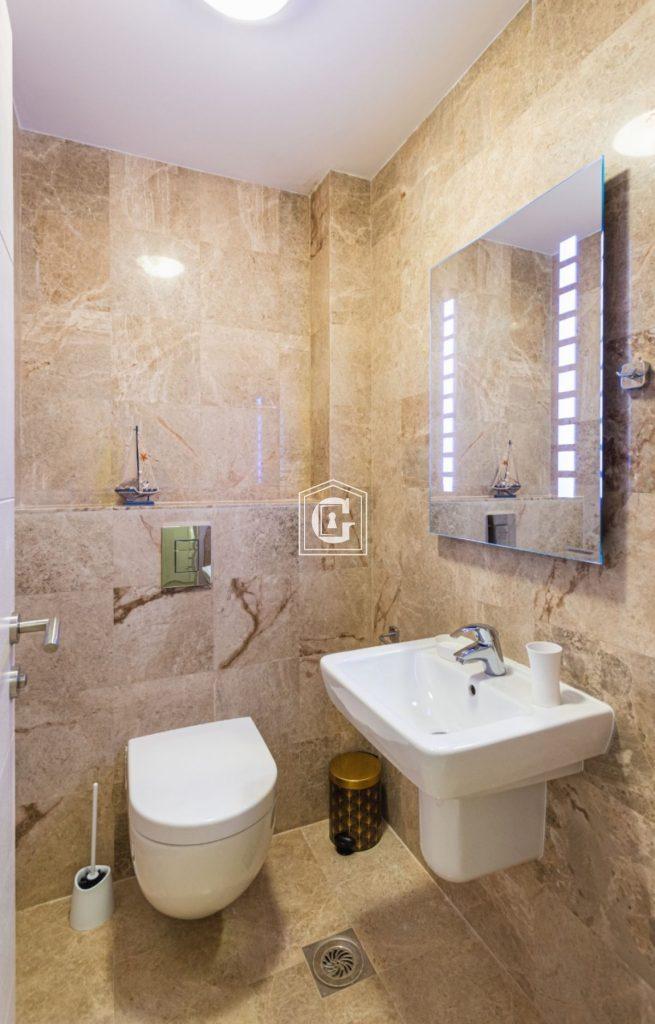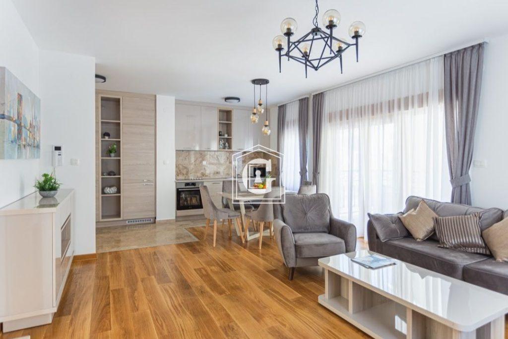 Struktura stana: kuhinja-dnevna soba, 1 spavaća soba, 1 kupatilo. 3. sprat sa pogledom na more. Elegantan i moderan enterijer. Savremeni renoviranje od kvalitetnih materijala. Skup nameštaj i tehnika. Klima uređaj.