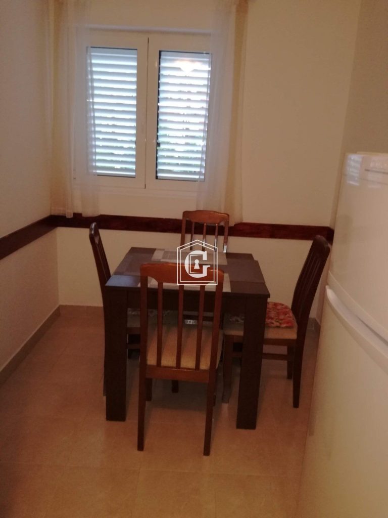 Struktura stana: 1 spavaća soba, 1 kupatilo, 2 terase, kuhinja sa trpezarijom. Spavaća soba sa sopstvenom terasom. Dnevni boravak sa sopstvenom terasom. 1. sprat. Nameštaj, tehnika, vodovodna instalacija. Biler.