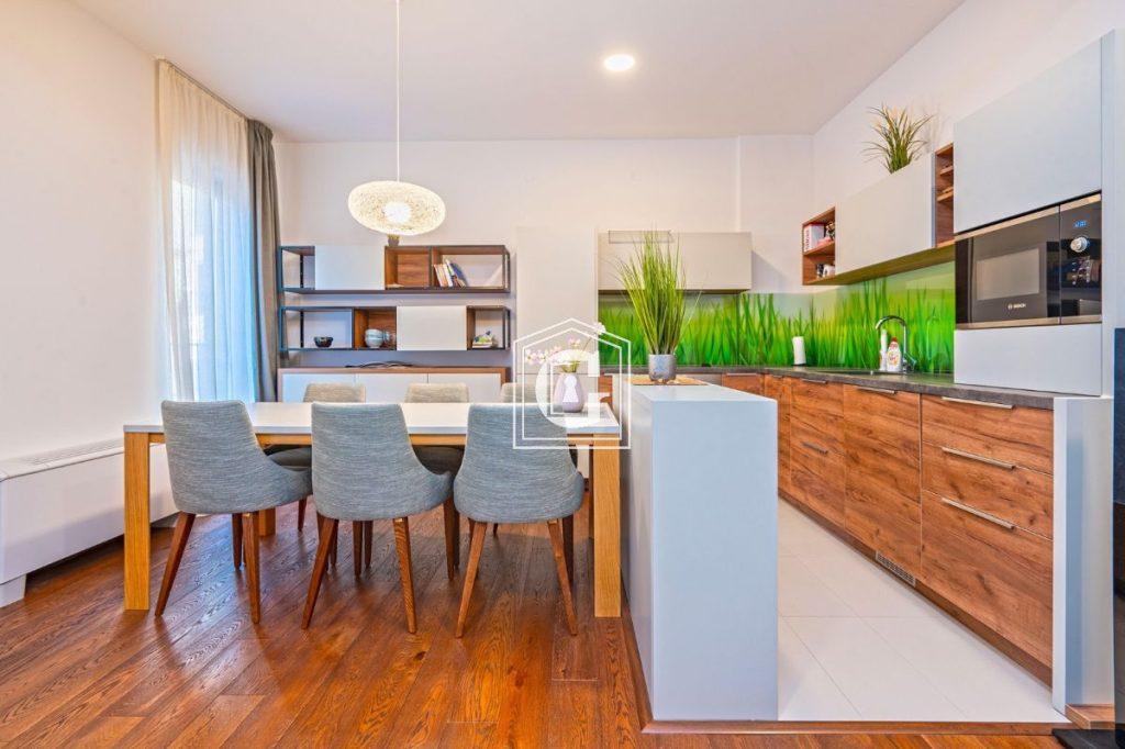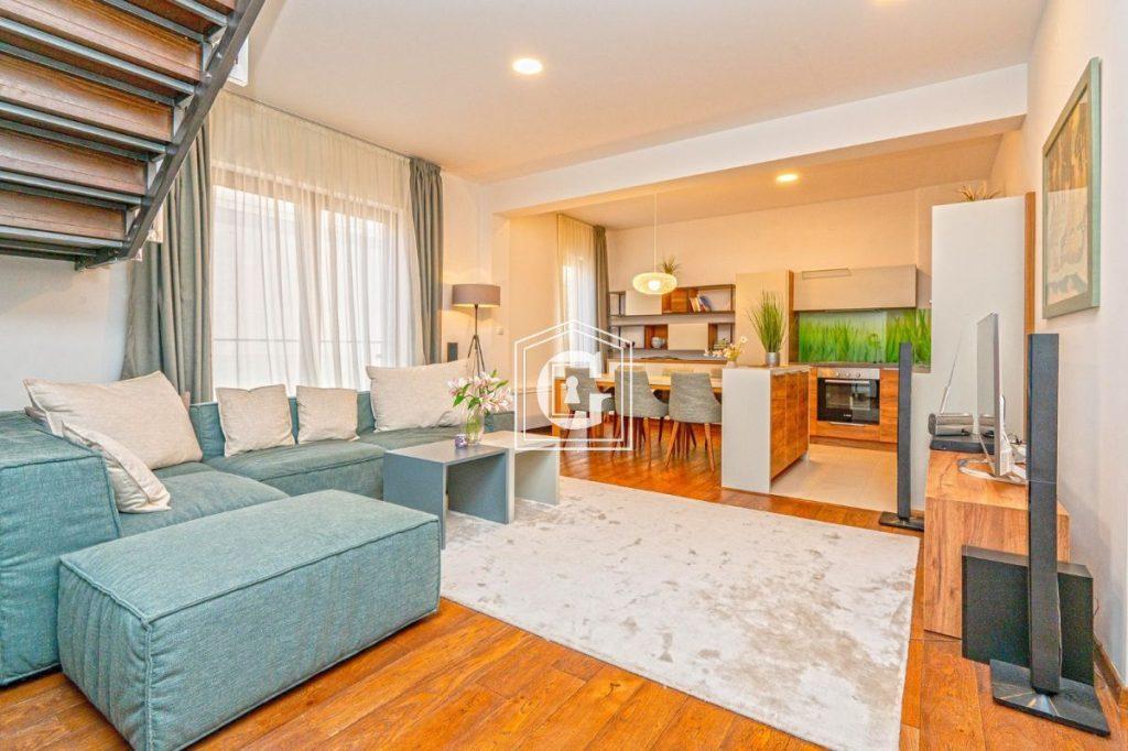 Struktura stana: kuhinja-dnevni boravak, 3 spavaće sobe, 3 kupatila, garderoba. 2 sprata. Pogled na more i grad. Savremeni renoviranje od kvalitetnih materijala. Nameštaj i tehnika. Split-sistemi, bojleri. Sva neophodna infrastruktura na par koraka.