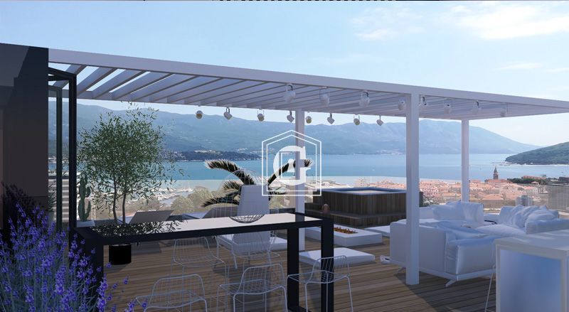 Novi stambeni kompleks luksuzne klase. Pogled na more i Stari grad. Bazen. Pogodna dispozicija. Stilski i moderan enterijer. Novi renovirani stan od kvalitetnih i skupih materijala: podovi od prirodnog drveta. Mogućnost opremanja stana nameštajem i tehnikom. Panoramsko ostakljenje, split-sistem, bojler. Sanitarije od poznatih proizvođača. Upravljačka kompanija.