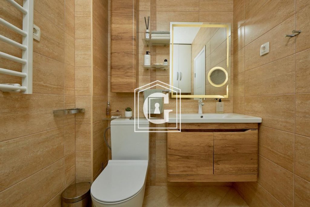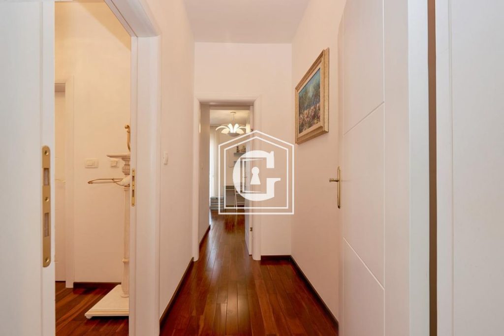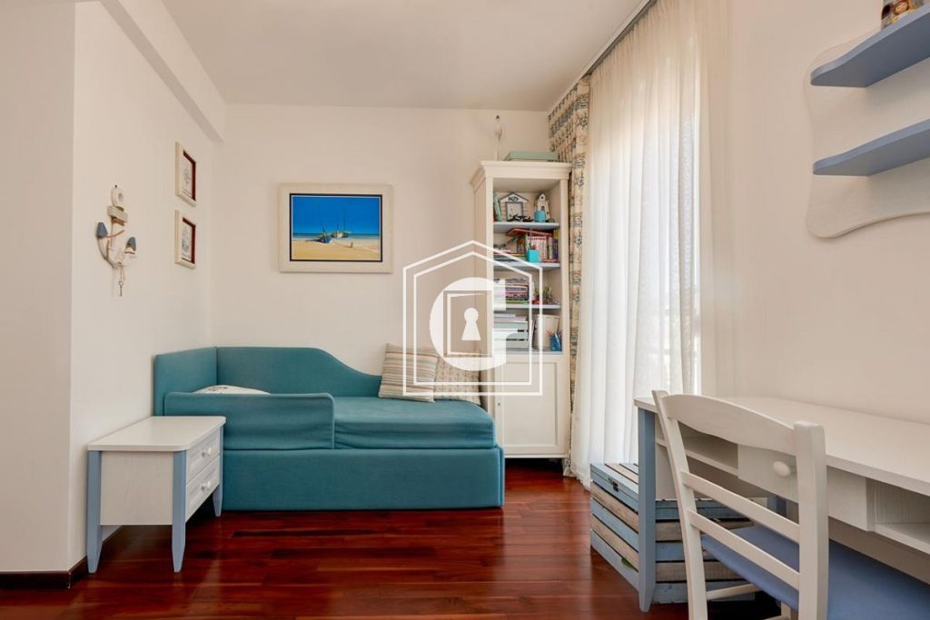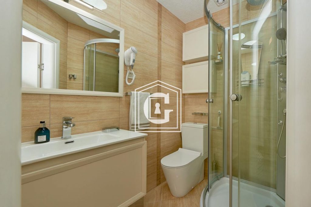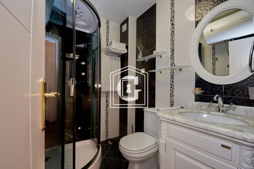Novi stambeni kompleks sa zatvorenim prostorom. Jedna od spavaćih soba je uređena kao dečija soba. Kauč u dečijoj sobi se rasklapa na 2 odvojena ležaja. Pogled iz prozora u sobama na more i planine. Visina plafona 2.70 m. 2 terase sa pogledom na more. Kuhinja-blagovaonica je opremljena ugrađenom tehnikom: frižider Miele, mašina za pranje posuđa Smeg, šporet Gorenje, napa Smeg, ugrađena rerna sa funkcijom mikrotalasne pećnice Smeg, frižider za vino Smeg. U gostinskom kupatilu/ostav-veš mašina postavljena je mašina za pranje veša/mašina za sušenje veša Miele, opremljen je ormar za skladištenje kućnog inventara i hemije. Dva kupatila su opremljena tuš kabinama (master spavaće sobe), jedno kupatilo je opremljeno kadom. U svakom kupatilu su instalirani bojleri, električni sušaci za peškire. U svakoj sobi se nalaze televizori (5 komada) Samsung. Prodaje se nameštajem, svetiljkama, belom tehnikom, zavjesama i slikama. Nameštaj, lusteri, svetiljke najvišeg kvaliteta proizvedeni u Italiji. Stan se nalazi u zgradi na poslednjem 5. spratu. Jedan stan po spratu. Hodnik ispred ulaznih vrata je opremljen nameštajem za čuvanje obuće i stalkom za vešalice, što omogućava smeštaj obuće i gornje odeće.