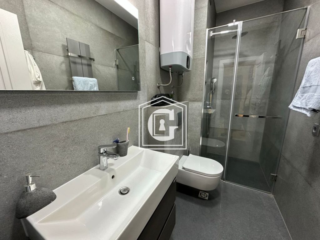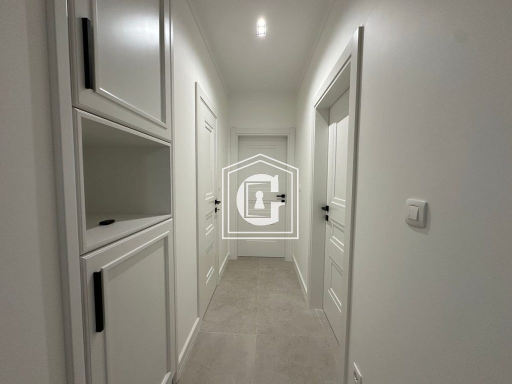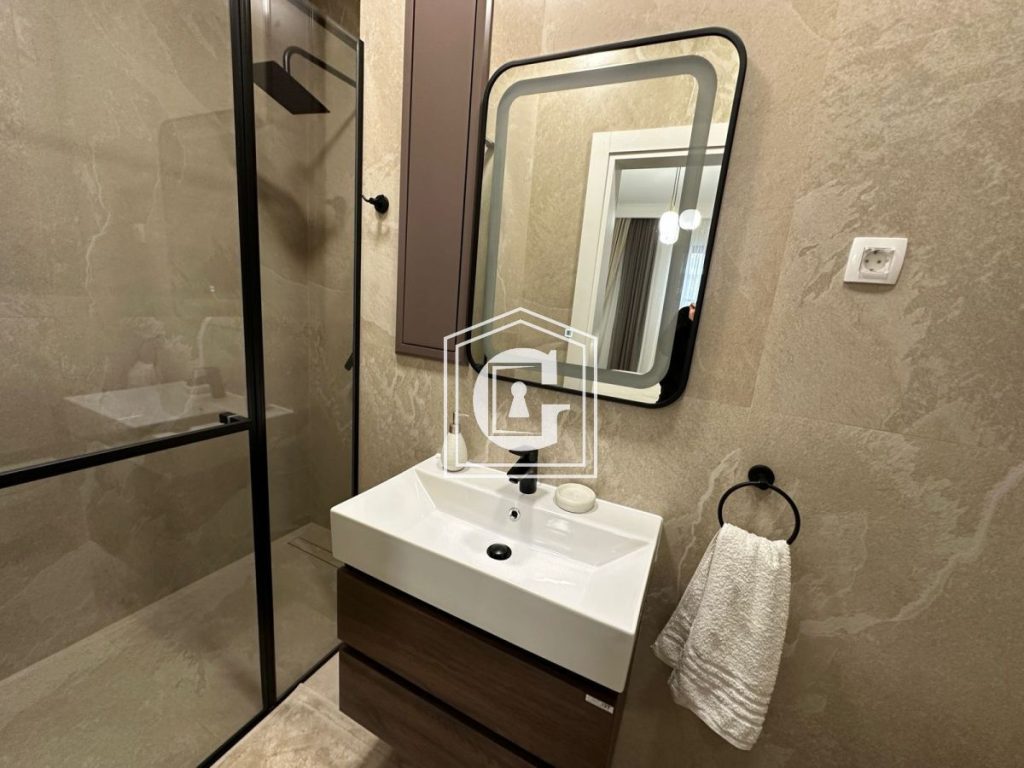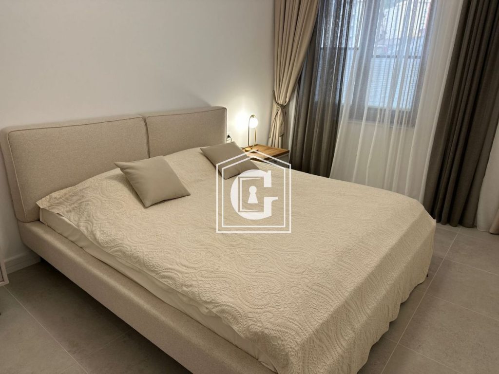 Novi stambeni kompleks sa BAZENOM i ležaljkama. Na teritoriji kompleksa je dečji vrtić. Pogled na planine i more. Praktičan raspored. Kvalitetna renovacija. Moderan i stilski enterijer. Prirodni podovi. Kvalitetna ulazna vrata. Pločice, sanitarije. Nameštaj i tehnika. Video interfon. Klima uređaj, električni bojler. Lift. Podno grejanje u kupatilu. Upravljačka kompanija.
