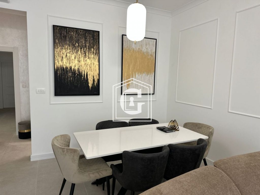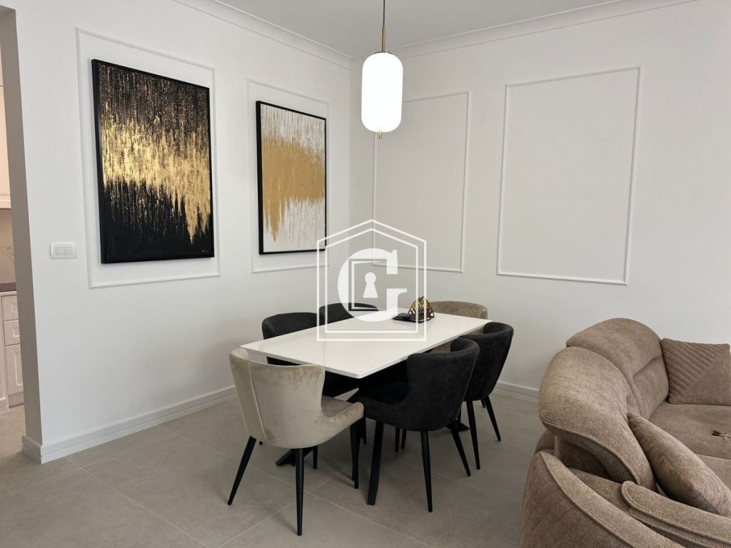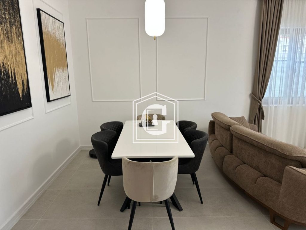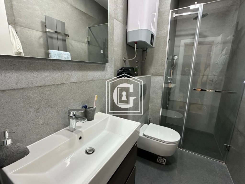 Novi stambeni kompleks sa BAZENOM i ležaljkama. Na teritoriji kompleksa je dečji vrtić. Pogled na planine i more. Praktičan raspored. Kvalitetna renovacija. Moderan i stilski enterijer. Prirodni podovi. Kvalitetna ulazna vrata. Pločice, sanitarije. Nameštaj i tehnika. Video interfon. Klima uređaj, električni bojler. Lift. Podno grejanje u kupatilu. Upravljačka kompanija.