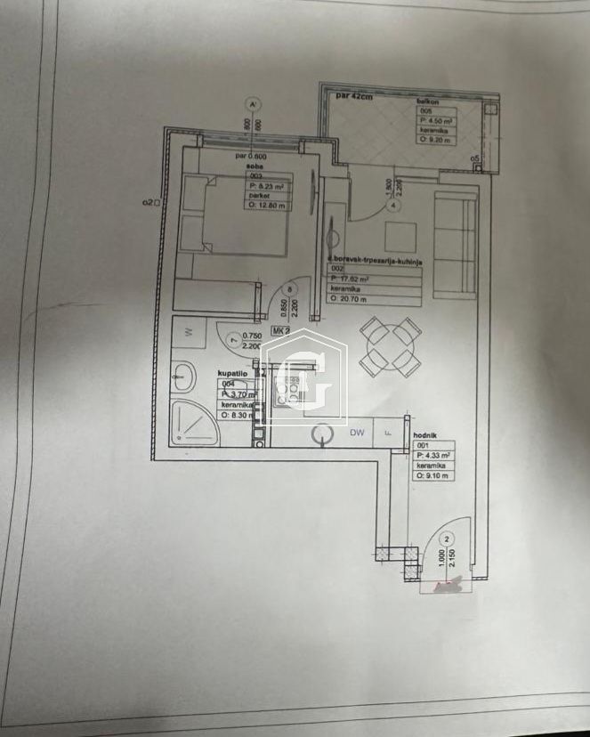 Struktura stana: Kuhinja-dnevni boravak, 1 spavaća soba, 1 kupatilo, hodnik, terasa.
