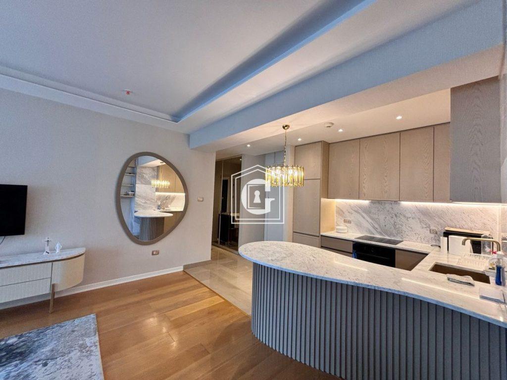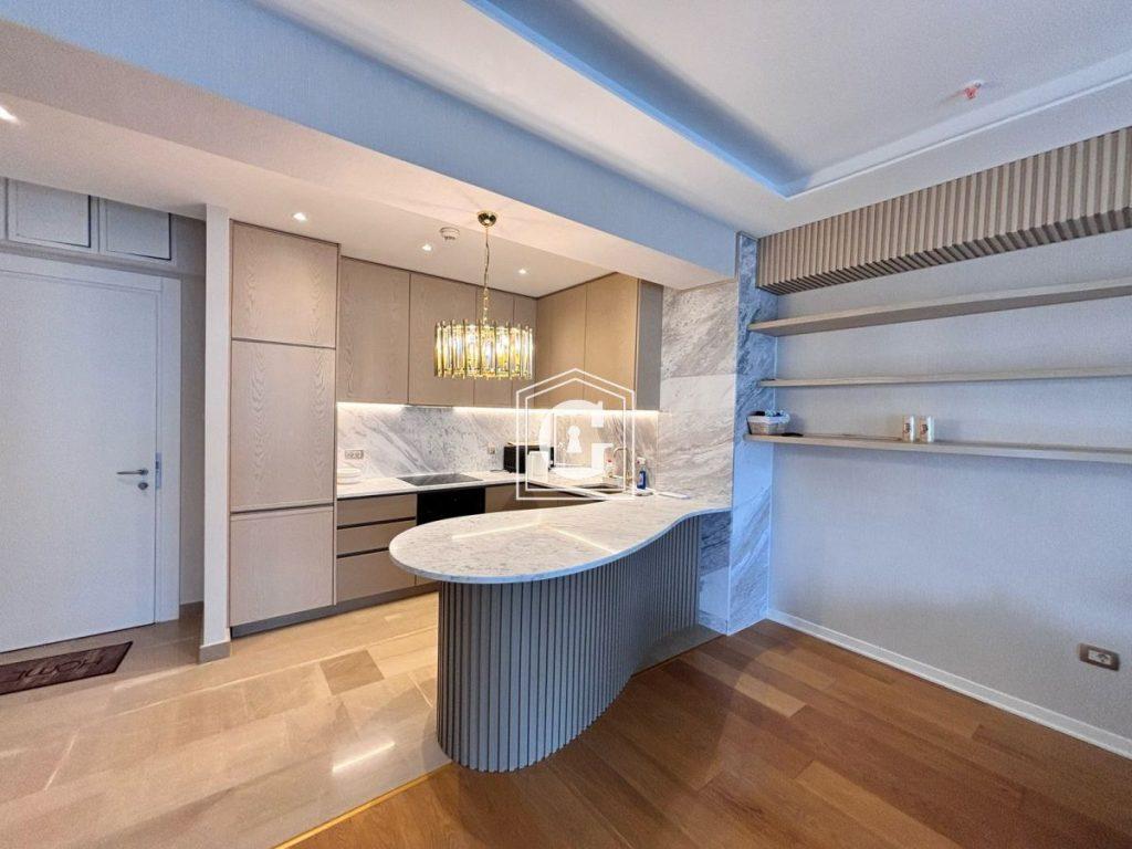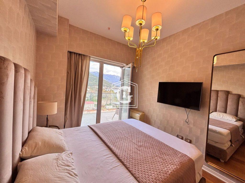 Pogodnosti: PRVA LINIJA DO MORA!!! Panoramski pogled na more. Elitni stambeni kompleks. Na krovu kompleksa nalazi se bazen, SPA, restoran sa pogledom na celu Budvansku rivijeru. Konjerž 24/7. Ispod kompleksa komercijalni prostori: restorani, prodavnice odeće, prodavnica namirnica itd. Pogodan raspored. Korišćenje kvalitetnih i skupih materijala. Moderan i stilski enterijer. Panoramsko ostakljenje. Visoki plafoni. Klimatizacija, sanitarne instalacije premium brendova.