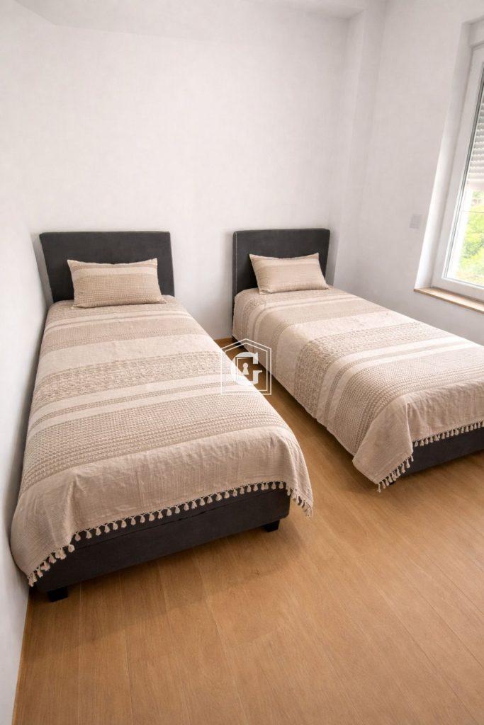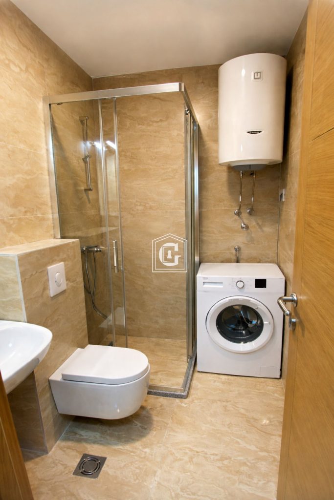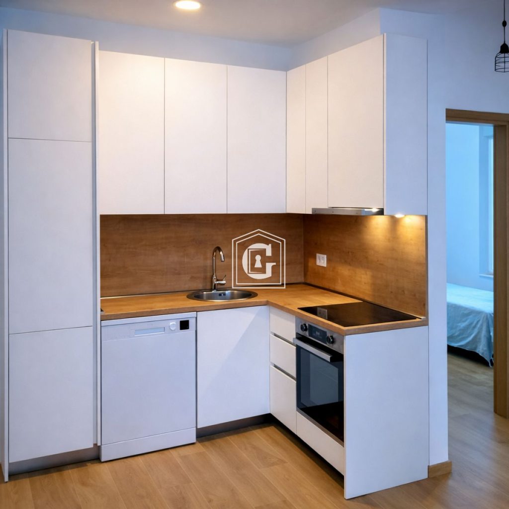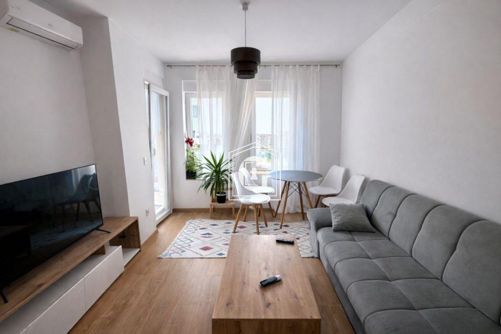 Struktura stana: 2 spavaće sobe, 1 kupatilo, kuhinja-dnevni boravak, terasa sa nameštajem. Novogradnja. Novi renovirani stan, nameštaj, tehnika. Panoramska prozori. Klima uređaj, bojler. Besplatno parkiranje na ulici pored zgrade. Skup i moderan nameštaj. Kvalitetan i nov renovirani stan. Potpuno namešten. Ima svu potrebnu tehniku i elektroniku. Klima uređaj. Bojler.