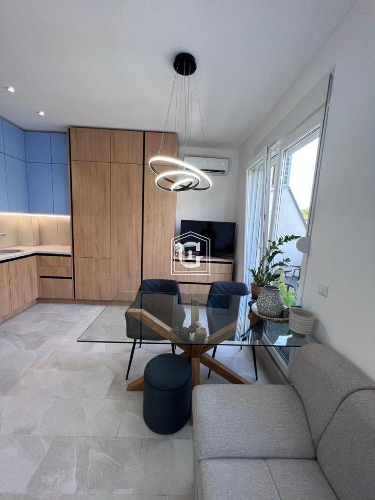 Novi nameštaj i tehnika, moderan enterijer, sunčana strana, podovi do prozora. Kupatilo sa svežim remontom i novim sanitarijama. Klima-uređaj, garderoba. Zatvorena teritorija, zatvoreno parkiranje. Autonomno grejanje. PARKING mesto uključeno u cenu!