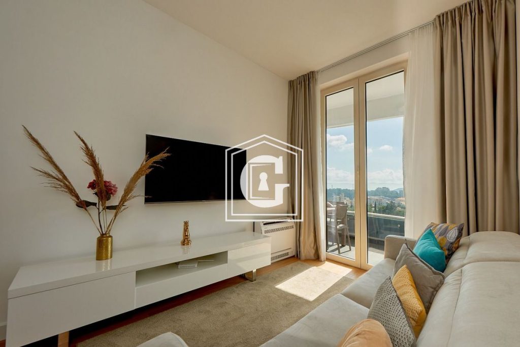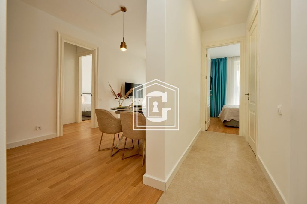 2 spavaće sobe, 2 kupatila, kuhinja – dnevni boravak, VELIKA terasa.